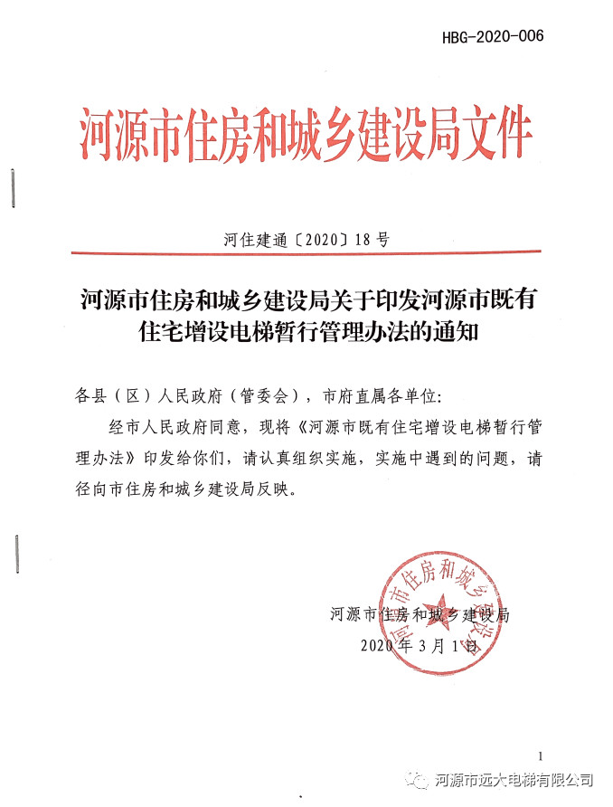 经市人民政府同意,现将《河源市既有住宅增设电梯暂行管理办法》印发给你们,请认真组织实施,实施中遇到的问题,请径向市住房和城乡建设局反映。